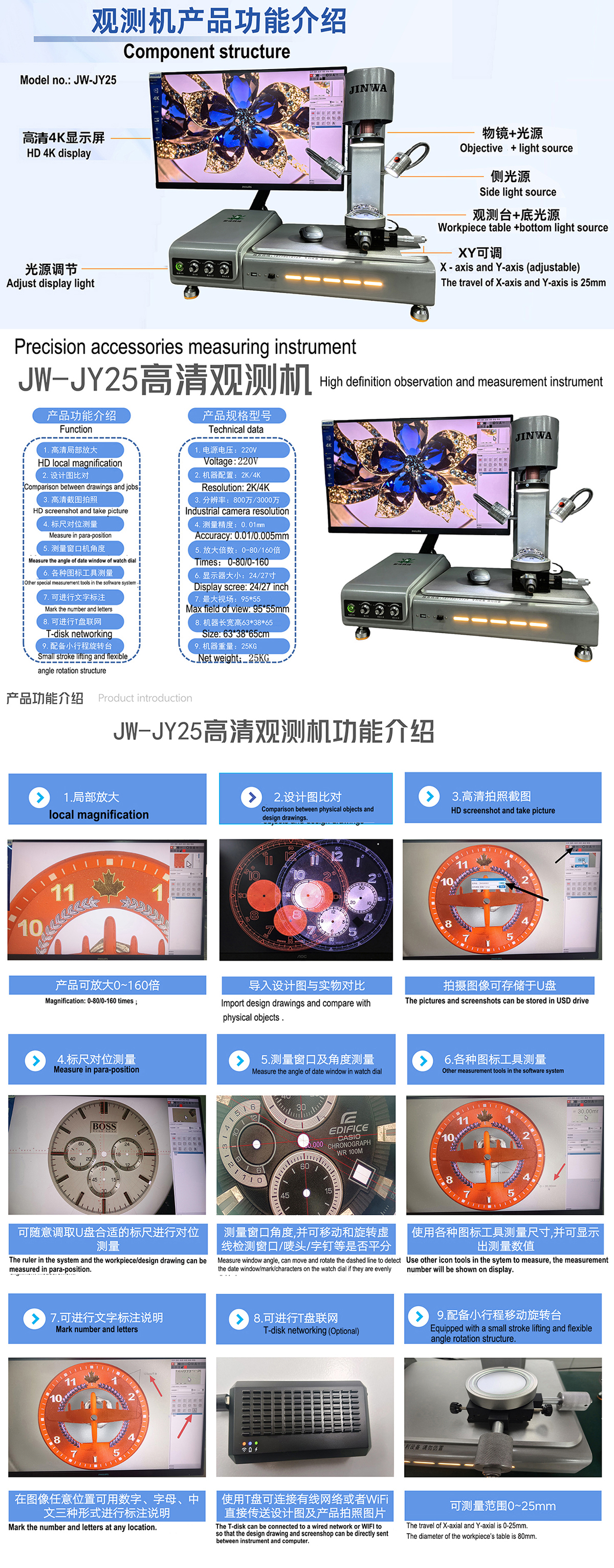 Application: Observe and measure high precision hardware accessories, such as clock and watch accessories, screws,jewelry etc.